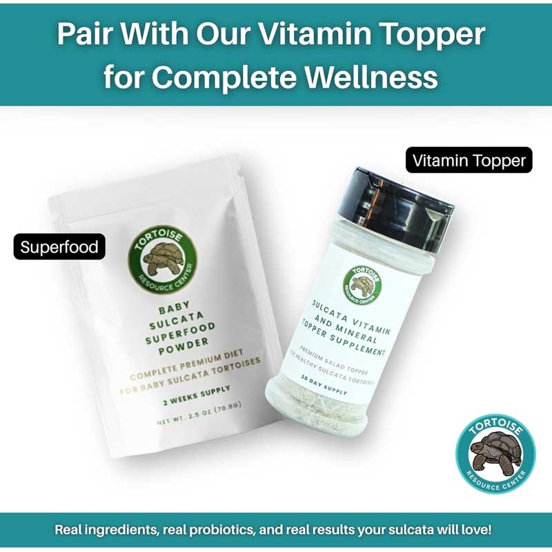 - ARE YOU GIVING YOUR SULCATA ENOUGH CALCIUM AND MINERALS? Strong Shells Without the Supplementation Guesswork: Enriched with natural calcium sources, biotin, Vitamin D, and essential minerals, this baby tortoise food strengthens and develops your tortoise’s shell while supporting overall bone health as a complete diet, so you can stop worrying about whether you’re providing the right supplements and focus on enjoying your pet.